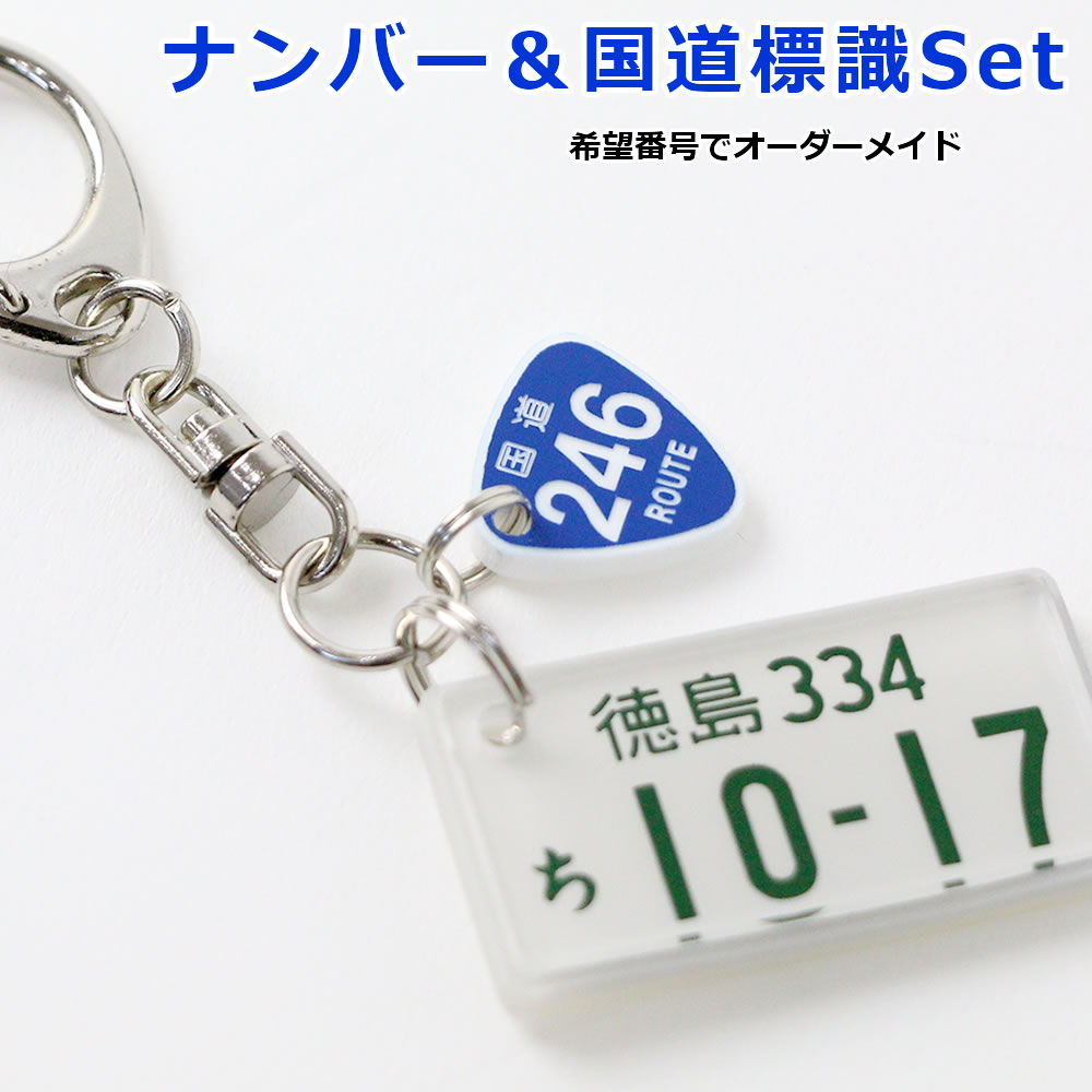 納車 や 退職の記念品に愛車を再現したナンバープレート キーホルダー 想いでの国道標識プレート ミニチュア 付き リアル で可愛い プレゼント ナンバーフレーム レーザー加工P20